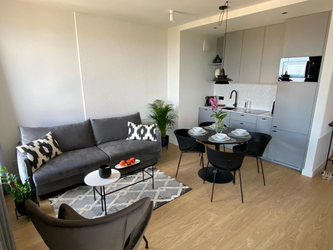W apartamencie do dyspozycji gości przygotowano taras, sypialnię (1), salon oraz kuchnię z doskonałym wyposażeniem, w tym lodówką i zmywarką. W apartamencie zapewniono ręczniki i pościel.