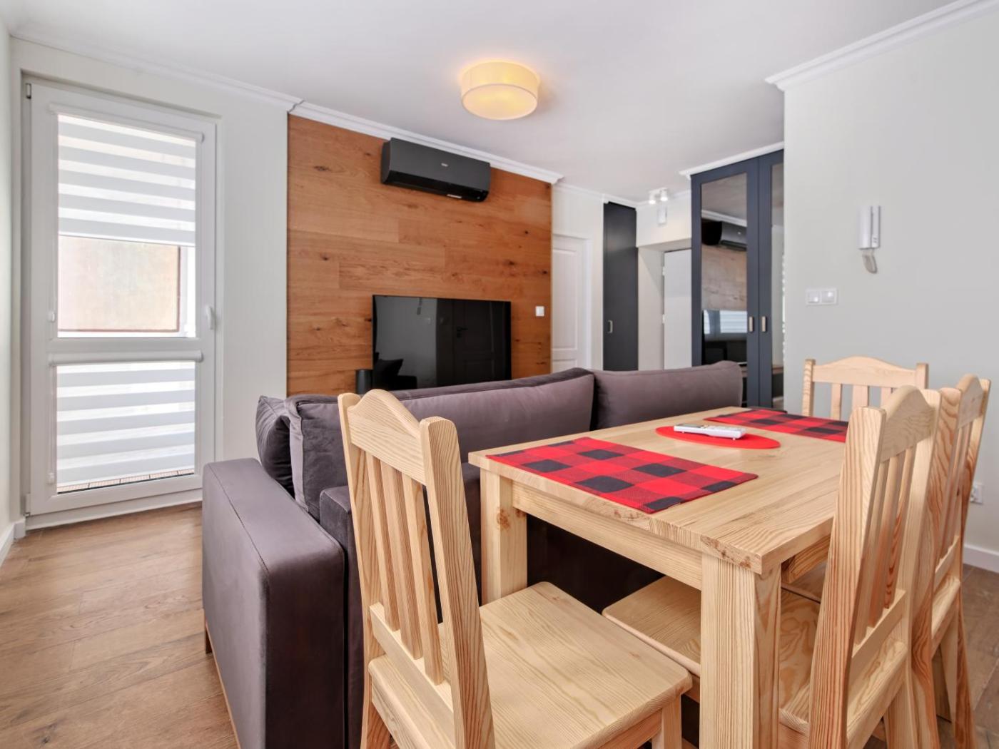 Apartament z 1 sypialnią. Boasting a private entrance, this air-conditioned apartment comes with 1 living room, 1 separate bedroom and 1 bathroom with a shower and a hairdryer. In the well-fitted kitchen, guests will find a stovetop, a refrigerator, a dishwasher and kitchenware. This apartment has a washing machine, a tea and coffee maker, a flat-screen TV with satellite channels and a balcony. The unit has 2 beds. Apartament - 4 osobowy. Powierzchnia pokoju ok.: 34 mkw.