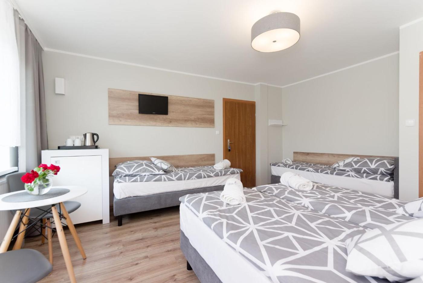 Pokój Czteroosobowy z balkonem. The quadruple room provides a tea and coffee maker, a wardrobe, a balcony with garden views as well as a private bathroom featuring a shower. The unit offers 4 beds. Pokój Czteroosobowy - 4 osobowy. Powierzchnia pokoju ok.: 19 mkw. ;