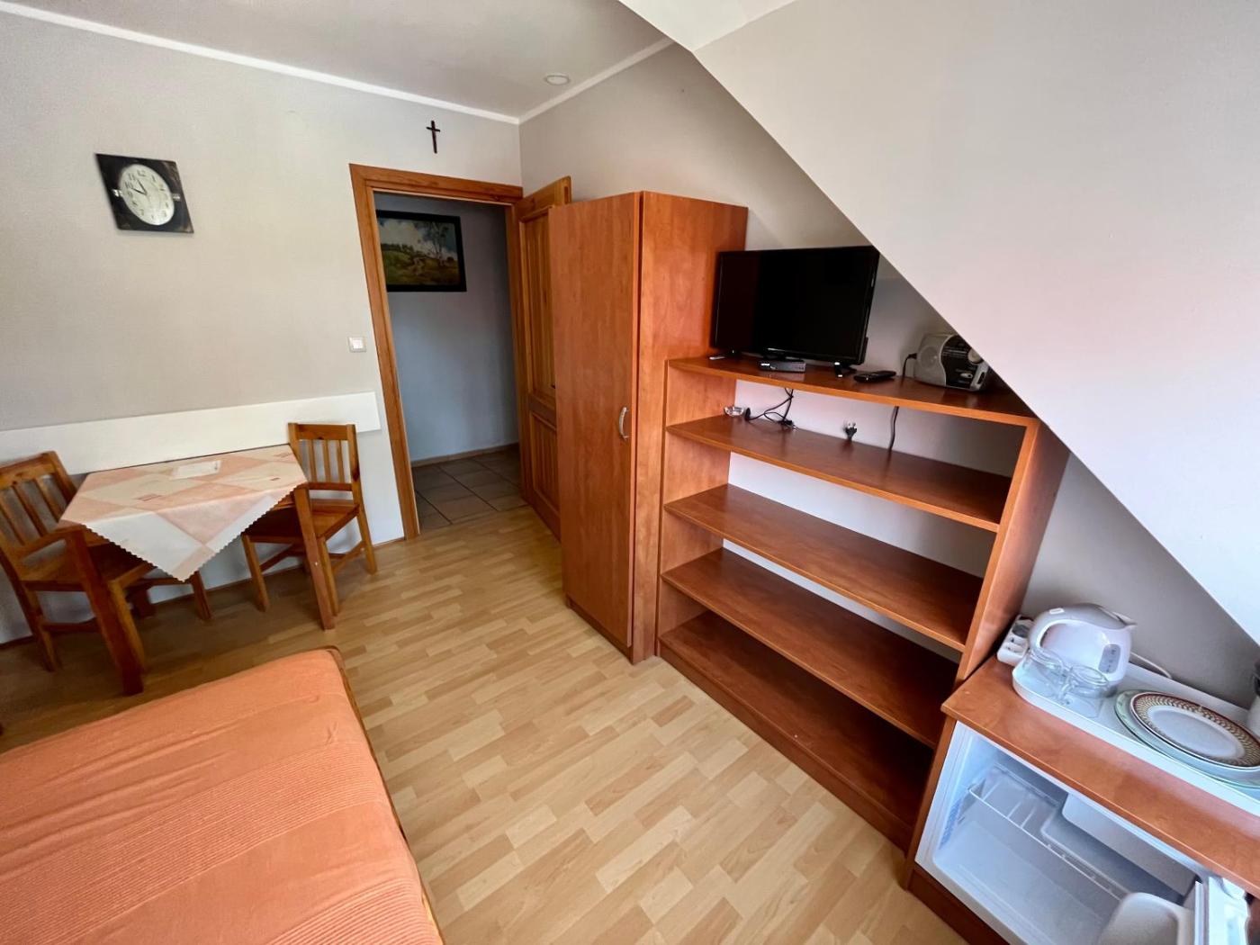 Mały pokój Dwuosobowy. The double room offers a dining area, a wardrobe, as well as a private bathroom featuring a shower. This double room features an electric kettle and a flat-screen TV. The unit offers 1 bed. Pokój Dwuosobowy - 2 osobowy. Powierzchnia pokoju ok.: 15 mkw.