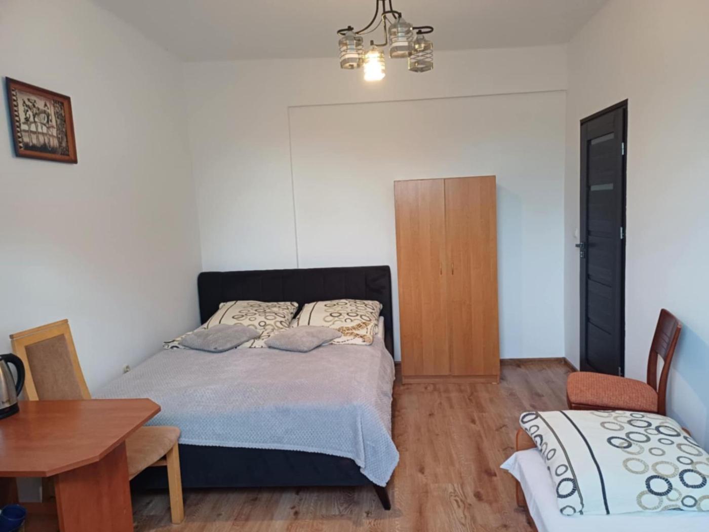 Pokój Czteroosobowy. This quadruple room has a private bathroom, a wardrobe and garden views. The unit has 3 beds. Pokój Czteroosobowy - 4 osobowy. Powierzchnia pokoju ok.: 18 mkw.